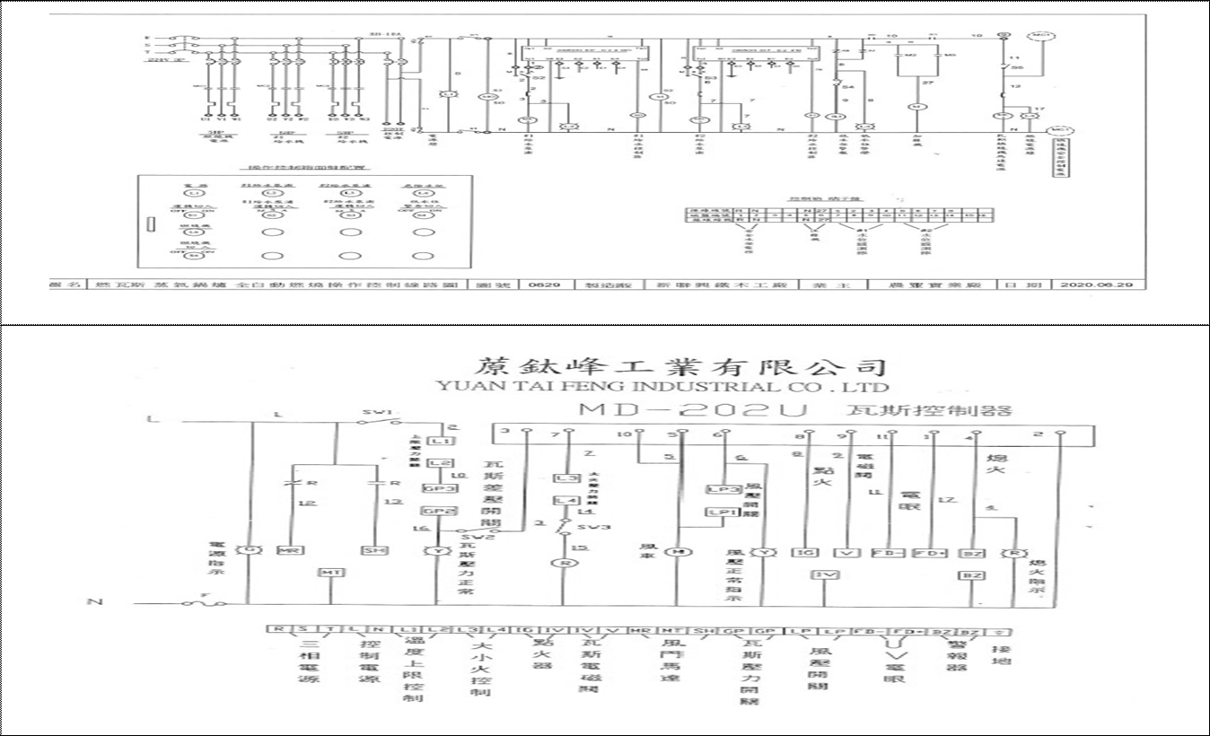 編號 開關名稱 按鍵種類 編號 開關名稱 按鍵種類 編號 開關名稱 按鍵種類 備註 01 控制箱總電源指示燈 指示燈 02 1 號抽水泵浦指示燈 指示燈 01 電源指示燈 指示燈 03 2 號抽水泵浦指示燈 指示燈 04 缺水警報器指示燈 指示燈 02 風壓正常指示燈 指示燈 05 燃燒機總電源指示燈 指示燈 06 控制箱總電源切入鍵 2P 切入鍵 03 燃燒機切入鍵 2P 切入鍵 07 1 號抽水泵浦切換鍵 3P 切換鍵 08 2 號抽水泵浦切換鍵 3P 切換鍵 04 低燃燒切入鍵 2P 切入鍵 09 缺水警報器切入鍵 2P 切入鍵 10 燃燒機總電源切入鍵 2P 切入鍵 05 高燃燒切入鍵 2P 切入鍵 11 控制箱總電源電磁閥 16 控制箱總電源 NFB 06 熄火指示燈 指示燈 12 1 號抽水泵浦電磁閥 17 1 號抽水泵浦 NFB 07 瓦斯壓力正常指示燈 指示燈 13 2 號抽水泵浦電磁閥 18 2 號抽水泵浦 NFB 08 總電源電磁閥 14 缺水警報器電磁閥 19 缺水警報器 NFB 09 總電源 NFB 15 燃燒機總電源電磁閥 20 燃燒機總電源 NFB 10 電腦控制程式系統