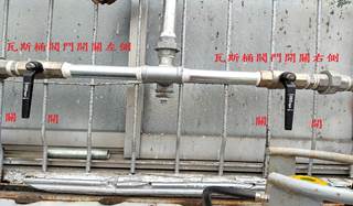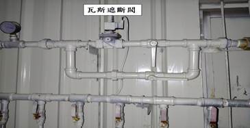 右側瓦斯使用量壓力錶 鍋爐房入燃燒機 1 號閥門開關 鍋爐房入燃燒機 2 號閥門開關壓力錶