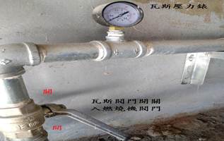 逆止閥 瓦斯濾網設備 遮斷閥旁通閥 左側瓦斯使用量壓力錶