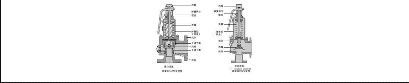 (所謂安全閥廣義上講包括泄放閥,從管理規則上看,直接安裝在蒸汽鍋爐或一類壓力容器上,其必要條件是必須得到技術監督部門認可的閥門,狹義上稱之為安全閥,其他一般稱之為泄放閥。安全閥與泄放閥在結構和性能上很相似,二者都是在超過開啟壓力時自動排放內部的介質,以保證生產裝置的安全。由於存在這種本質上類似性,人們在使用時,往往將二者混同,另外,有些生產裝置在規則上也規定選用哪種均可。因此,二者的不同之處往往被忽視。 從而也就出現了許多間題。如果要將二者作出比較明確的定義,則可按照《ASME 鍋爐及壓力容器規範》第一篇中所闡述的定義來理解: