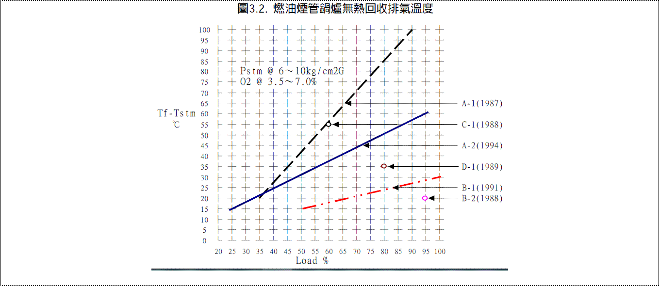 燃油鍋爐因低溫腐蝕問題,排氣溫度平均約 200℃,且怕油氣混和不均勻,通常過剩空氣量都
