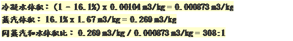 (26.8 ft3/lb)。当 1.0 MPaG (145 psig)的高温冷凝水排放至大气压时,16.1%的冷凝水会闪蒸成蒸汽。所得到的蒸汽和水的体积比如下: