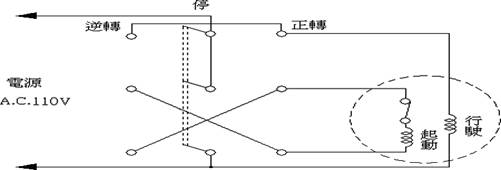 而單相感應電動機之正逆轉控制,除了使用電磁接觸器外,尚可用鼓形開關、地閘刀開關來控制、四路開關來控制正逆轉。