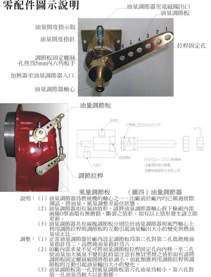 排放管內空氣 (4) 逐步減小風門角,油壓加高或油量加大,調整油量調節器 (5)