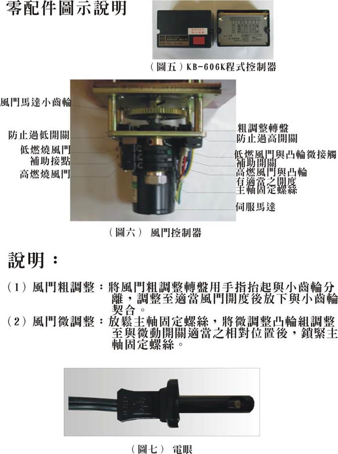 . 零配件圖示說明 (程式控制器、風門控制器、電眼)............. 9